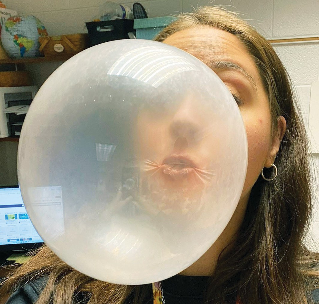 The event coincided with National Chewing Gum Day (Tuesday, Sept. 30th), and all faculty and staff were invited to participate. The challenge was issued by school secretary Kellie Dalton, who allowed each participant two pieces of “Hubba Bubba” gum — one for practicing and the other for competition.