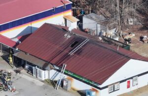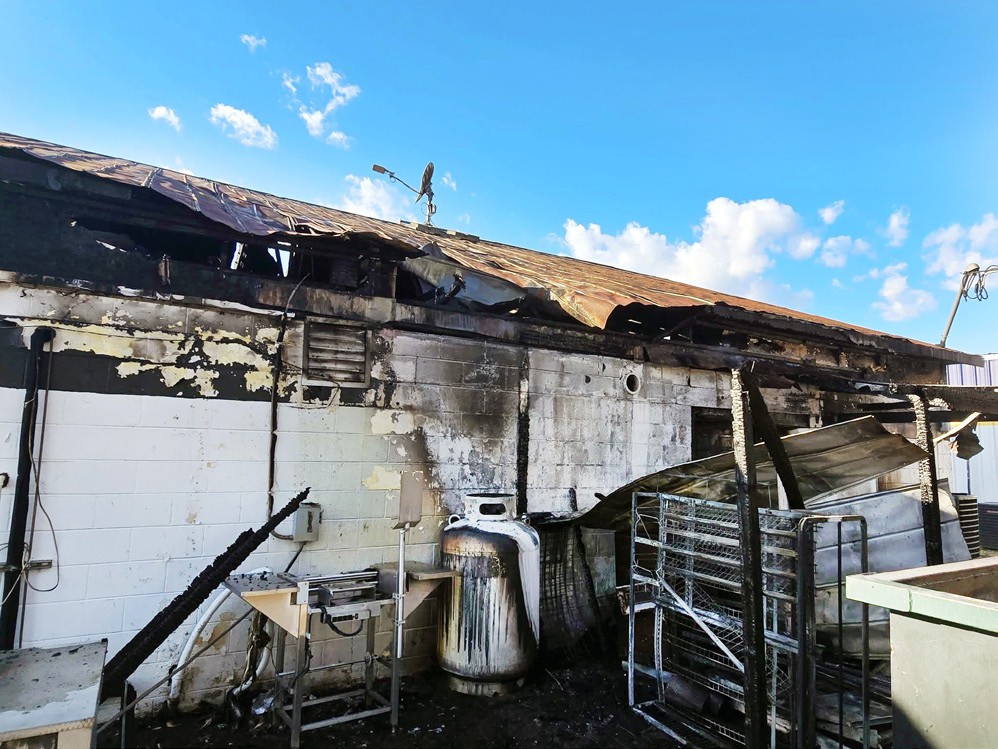 Beares said the blaze likely started in a dumpster behind the building. “It appears the dumpster was the first thing that caught fire, which then led to the awning at the rear of building to also catch fire. That then led to a propane tank catching on fire, venting with flames coming from it and catching the roof on fire.”