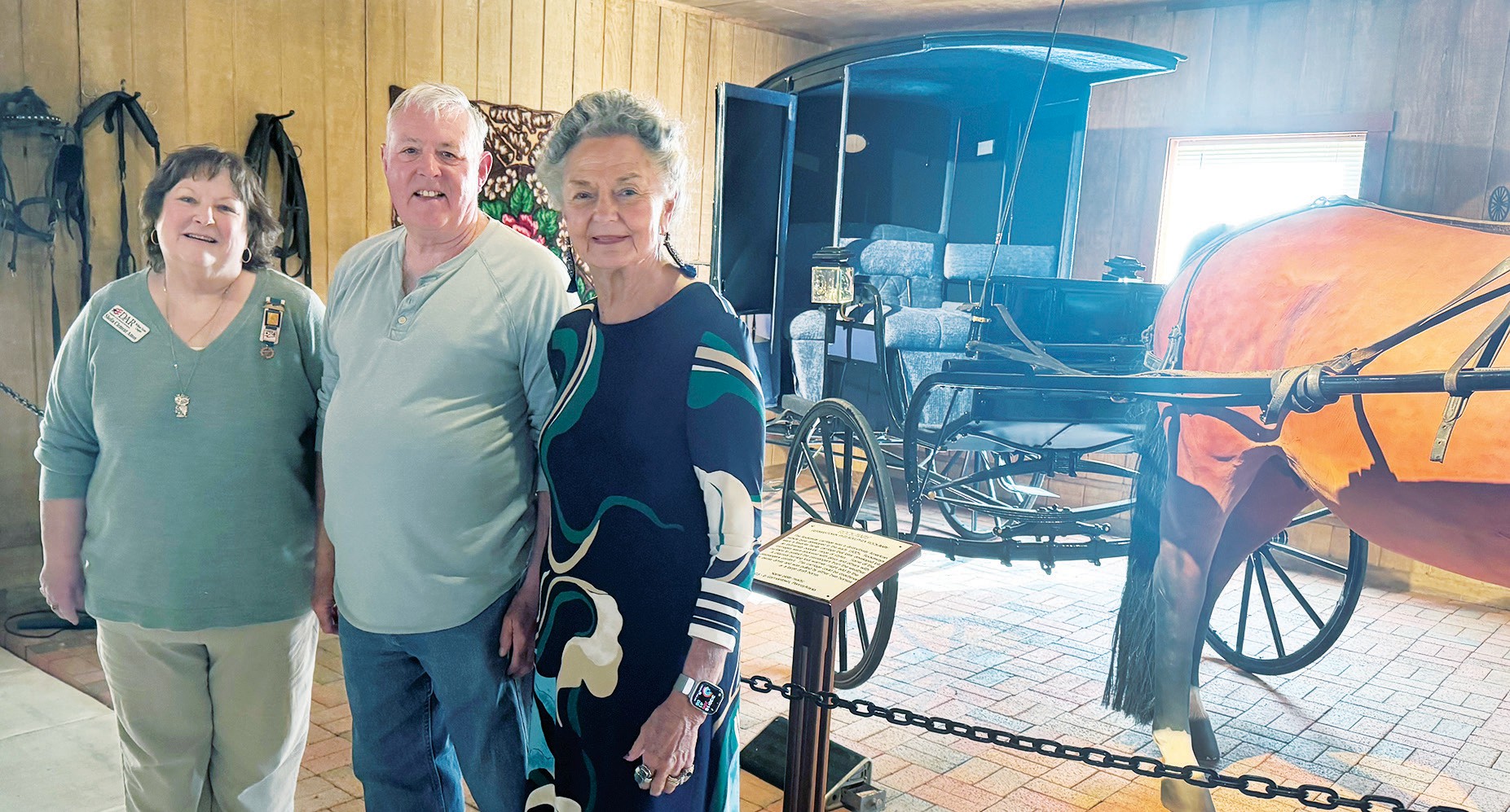 Galloping Back Into History DAR and Colonial Dames members recently enjoyed a tour of the Robert Thomas Carriage Museum in Blackstone. Shelia Amos (left) and Lucy “Cookie” Currin (right) are shown with Robert “Bob” Thomas, tour director, at the carriage museum in Blackstone that carries his late father’s name.
