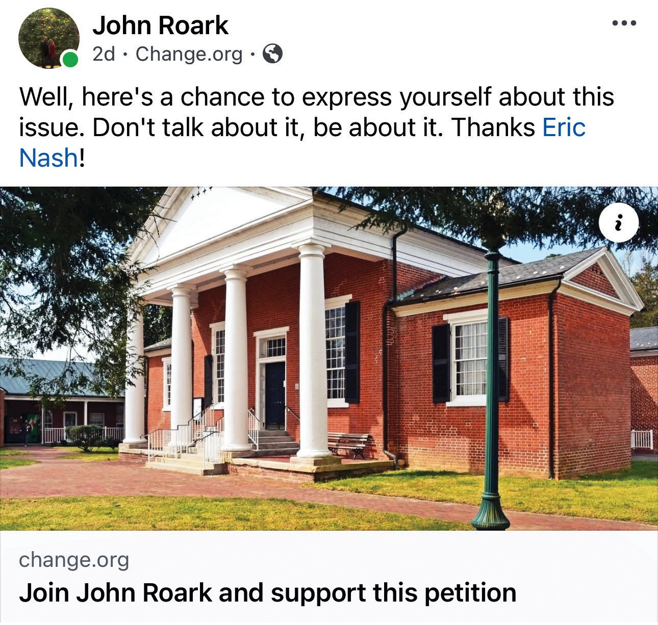 Weekend Development With apparent help from Blackstone Councilman Eric Nash, District 2 Supervisor John Roark launched on online petition Saturday seeking support to make renovations at the courthouse complex rather than new construction. The petition can be found on John Roark’s Facebook page.