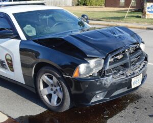 This was the scene Christmas Day — shortly before 2:00 p.m on Thursday, Dec. 25rth. — at intersection of South Main & 8th Street. State Police say Blackstone officer Deven Baugus, 23, of Midlothian, was driving south on Main when the 2014 Chrysler unit struck the rear of a 2015 Chevy sedan that was stopped at the light and being operated by Vachel Deangelo, 60, of Victoria. Deangelo was transported to an area hospital with injuries described by police as minor. Officer Baugus escaped injury. No charges were filed. Photos courtesy of Blackstone PD Thursday’s Christmas Day crash remains under investigation. It’s the third officer-involved accident here in six months. In June, officer Dylan Mosier was on patrol on South Main near Clay’s Garden Center and collided with a pick-up while making a U-turn to pursue a vehicle with equipment violations. Just two days earlier, Mosier’s wife Emily was on patrol when a motorcycle being pursued by Lt. Tony Mayton struck the front of her police vehicle on Maben Avenue.