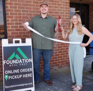 Another new business — believed to be the first of its kind here — has opened in downtown Blackstone. Foundation Meal Prep will operate out of the kitchen of “Salt & Love” on West Irvin Street, behind Edgerton Florist. Operators Timmy & Julie Long of Blackstone are shown here cutting ceremonial ribbon in front of the Courier- Record. The Longs are taking orders all week and are open for meal pick-ups on Tuesdays from 4-7 p.m. Foundation Meal Prep meals are high-protein, low fat, affordable, and ideal for those on the go and who don’t have time to cook a healthy meal. Timmy & Julie are 2018 graduates of Nottoway High School and have two sons, Henry, who turns 3 in May; and Jase, 5 months. For menu and more information, visit: foundationmealprep.com or call 434-298-4564. The Longs are hoping to offer breakfast meals in the future as well as meal delivery service. Their meals can be refrigerated for up to seven days or frozen for future enjoyment.