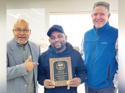 Town of Blackstone Street Dept. Supervisor Wallace Akers (center) was honored at the Town’s recent Employee Christmas Luncheon for his upcoming retirement. Akers served the Town for 36 years — from December 6, 1989 through December 2025. Mayor Lafayette Dickens (left) and Town Manager Philip Vannoorbeeck presented Akers a ceremonial ‘key to the city’ and plaque of appreciation.
